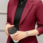 Toto klasické sako nabízí přizpůsobený střih, pevná ramena a lichotivou siluetu. Jednoduché zapínání vpředu vytváří upravený a elegantní vzhled, zatímco dekorativní manžety a ostré límce dodávají nadčasový půvab. Kombinujte s džíny nebo přes halenku – to je jistá volba pro okamžitou stylovost a sofistikovanost.