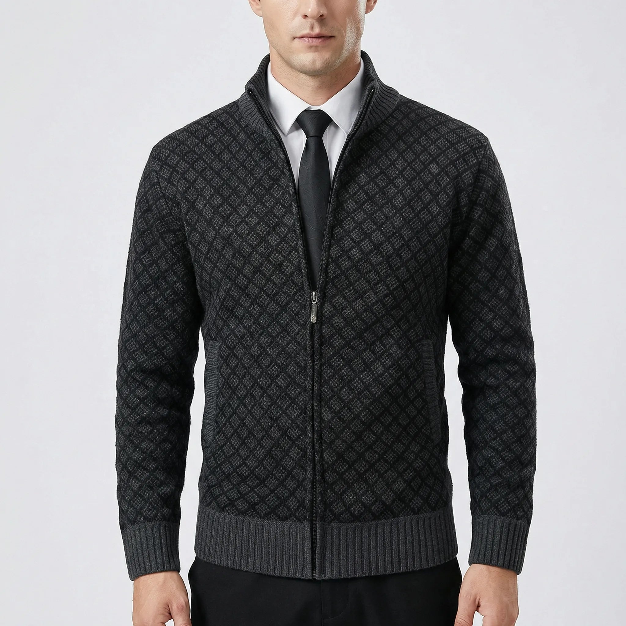 Pánský svetr | Pletený cardigan se zipem a vysokým límcem