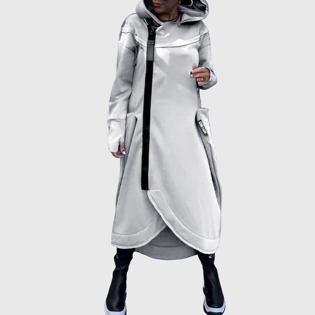 Bunda Adriana je ideální volbou pro ženy, které hledají originální design a funkční kousek do každého počasí. Díky asymetrickému zipu, praktické kapuci a pohodlnému střihu se stane nezbytnou součástí vašeho šatníku. Perfektně kombinuje ležérní styl s moderním nádechem – ať už do města, na cestu do práce nebo na volný čas.