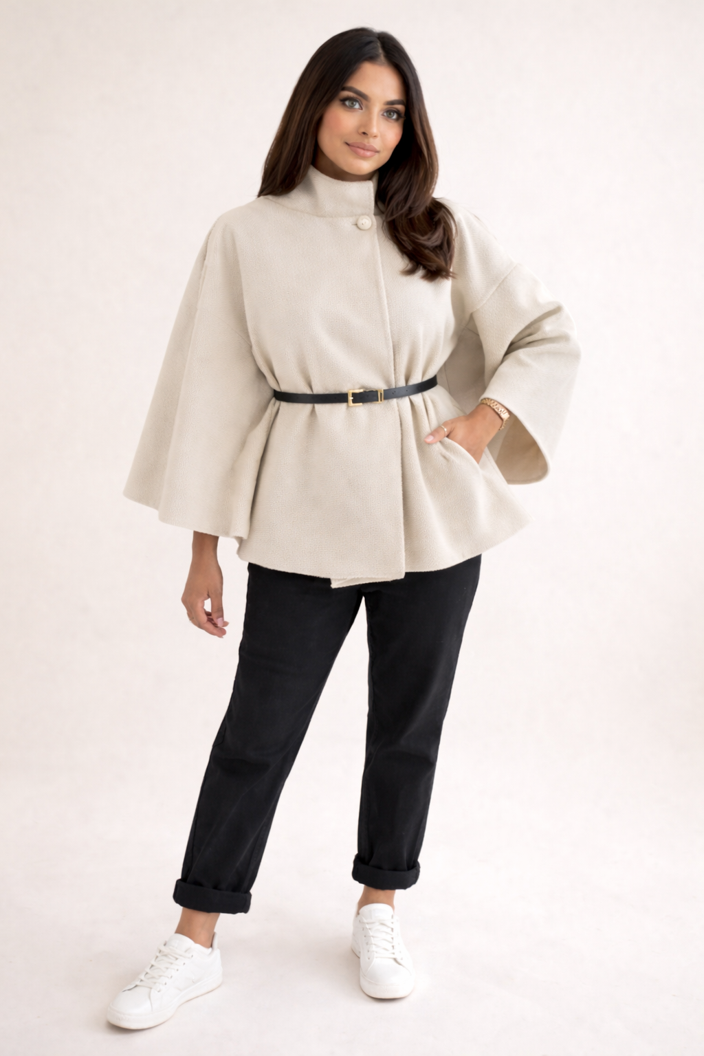 Bunda Lea vyniká jedinečným designem s volnějšími rukávy a elegantním páskem, který krásně zvýrazní siluetu. Je ideální volbou pro podzimní dny – ať už na procházku městem, do kanceláře nebo na večerní setkání. Snadno se kombinuje s džíny, šaty i sukněmi a dodá každému outfitu ženský šmrnc.