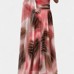 - Jednoramenní výstřih: Výrazná květinová aplikace dodává šatům elegantní nádech.