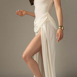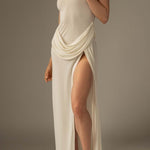 Představte se stylově s šaty Duchess, které vyzařují luxus a vytříbenost. Tento úchvatný kousek se vyznačuje drapováním, které přináší plynulost a architektonickou eleganci, a doplňuje váš outfit v nezapomenutelných chvílích.