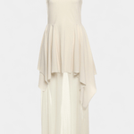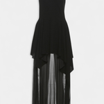 - Designové detaily: Francouzský V-výstřih kombinovaný s halterneckem, otevřená záda a síťový detail v pase vytvářejí sofistikovanou siluetu.