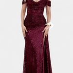 Vítejte ve světě Ariel, kde se nádherný design setkává s nezapomenutelnou elegancí. Tento uživatelsky přívětivý silueta je navržena tak, aby zářila ve zvláštních okamžicích, spojující romantické drapování s off-shoulder výstřihem a pevným korzetem, který zvýrazňuje krásu postavy. Vysoký rozparek a mořská panenka střih dělají z těchto šatů dokonalou volbu pro gala akce a formální oslavy.