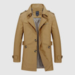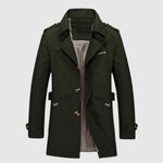 Tento dlouhý kabát kombinuje sofistikovanost vintage designu s moderní funkčností. Jeho strukturovaný střih zdůrazňuje mužskou siluetu, zatímco podšívka zaručuje pohodlí a teplo v chladnějších dnech. Ideální pro každou příležitost, od formálních setkání po procházky městem.