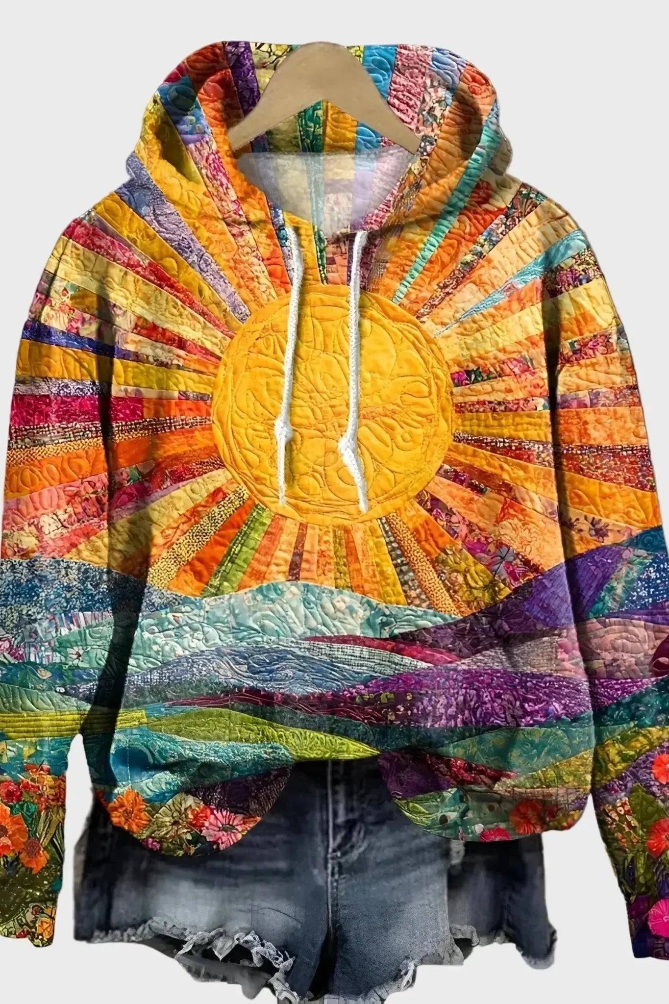 Mikina s slunečním vzorem spojuje styl a pohodlí. Její měkký povrch přináší teplo a volný střih z ní dělá ideální kousek pro každodenní nošení. Oblečení, které spojuje praktičnost a eleganci v každém outfitu.