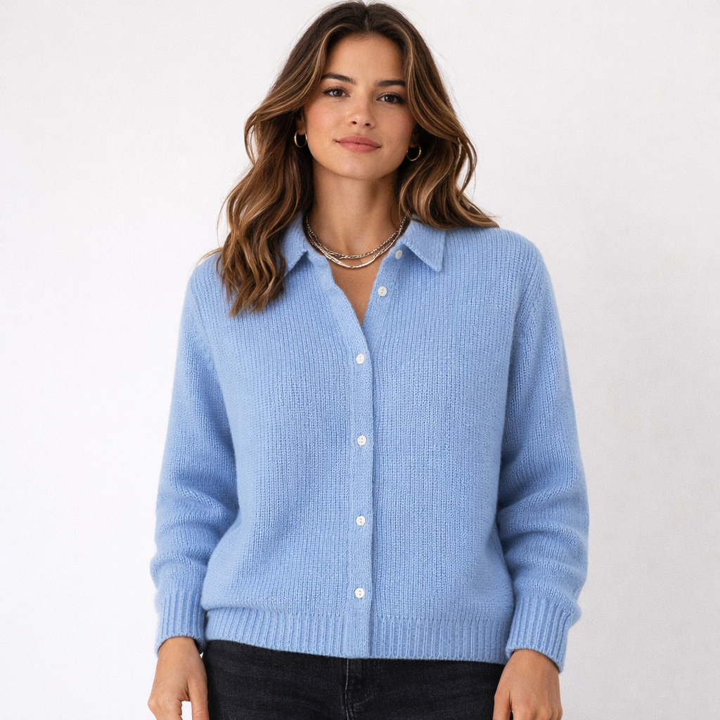 Tato dámská pletená košile kombinuje měkký strukturovaný úplet s nadčasovým designem na knoflíky. Nabízí dokonalou rovnováhu mezi pohodlím a stylem – ideální pro každodenní nošení i elegantnější kombinace.