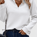 Podstatně decentní, každodenně pohodlný. Svetr Helene má jasný siluetu a právě dost detailů díky stylovému zipovému V-výstřihu a uvolněnému střihu. Díky své lehkosti je příjemné ho nosit, ale dostatečně elegantní, aby pozvedl váš styl – tento kousek se bez námahy přizpůsobí jakémukoli dni, plánu nebo náladě. Ať už jste upravená nebo minimalistická, Helene si vždy najde své místo.