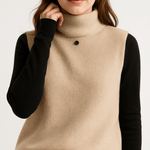 Dámský svetr bez rukávů s vysokým límcem je trendy kousek, který spojuje moderní styl a měkké pohodlí. Ideální na přechodné období nebo pro vrstvení s tričkem – dodá outfitu sofistikovaný nádech a udrží krk v teple. Stylový a univerzální základní kousek, se kterým vytvoříte upravené celky.