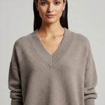 Obklopte se bezstarostnou elegancí s tímto kašmírovým svetrem, který má lichotivý volný střih a jasné linie. Jemně pletený povrch dodává sofistikovaný nádech, zatímco klasický výstřih a ribované okraje přinášejí nadčasový vzhled. Navržený pro vrstvení nebo nošení samostatně – přineste do svého šatníku decentní styl.