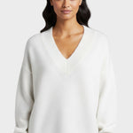Základní klasika šatníku: Díky klasickému tvaru a minimalistickým detailům se tento svetr snadno kombinuje s kalhotami, sukněmi nebo džíny – univerzální volba po celý rok.