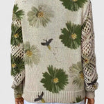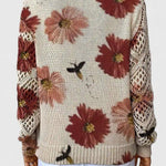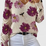 Tento tenký svetr s květinami v odstínech fialové a levandulové dodává každému outfitu ženský a jemný nádech. Vzdušný design rukávů zakrývá ruce, aniž by se obětoval komfort, a měkký V-výstřih dělá svetr ideálním pro nošení například s šperky nebo šátkem.